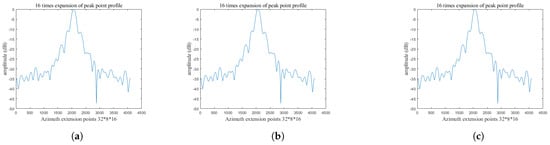 Azimuth amplitude results. (a) is the CPU implementation result; (b) is the GPU implementation result; (c) is the result of the proposed method implementation.