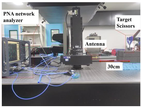 Simulation experimental configuration: Inter(R) Core(TM) i5-7400 CPU @ 3.00GHz processor; 64-bit operating system; 16G memory (RAM); 1 NVIDIA GTX 1050 4G GDDR5 discrete graphics card; 1 PNA network analyzer. The measurement parameters used in the experiment are listed in Table 1. The single point simulation experimental scenarios and results are shown in Figure 6.