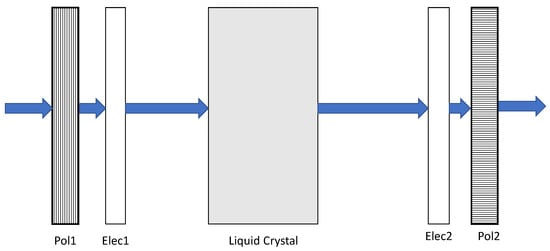 The concept of LCD involves light entering through a polarizing filter, passing through an electrode and then into a liquid crystal, then into another electrode, and then through a polarizing filter, and then out, as shown in Figure 2. The amount of light exiting the liquid crystal depends on the voltage being passed through it. The higher the voltage applied, the more the amount of light that passes through it. This lets the LCD display any grayscale values almost instantaneously.