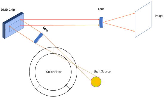 The DLP projector uses a single-chip DMD in conjunction with a color wheel to generate R, G, and B values one after the other while LCD and LCoS contain three chips and can generate color simultaneously. Researchers have, however, been able to overcome the DLP’s limitation and still use it for real-time imaging [48].
