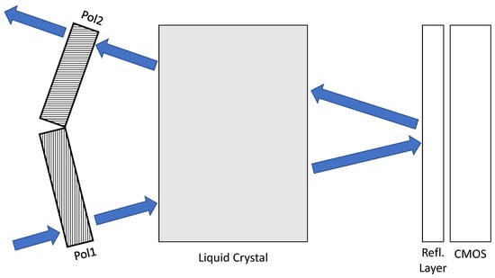 Liquid Crystal on Silicon is a technology that varies light intensities by manipulating liquid crystals, but instead of using LCD’s transmissive technology to steer the light, it employs the DLP’s reflective technology as illustrated in Figure 5. The light passes through polarizer , and then enters the liquid crystal to reach the reflective coating that reflects the light back. The silicon layer controlling the liquid crystal is a CMOS semiconductor. The reflected beam passes through the Liquid crystal again and then passes through polarizer and then exits. Changing the voltage applied to the electrodes will modulate the grayscale value of the light emitted. LCoS also starts at a higher resolution compared to the DLP and LCD technologies [47].