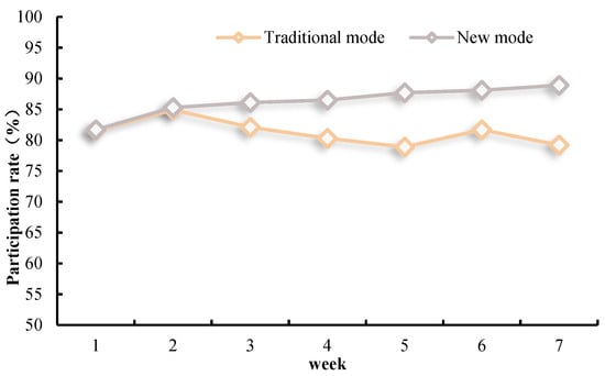 Changes of students’ classroom participation rate in 7 weeks under the two models.