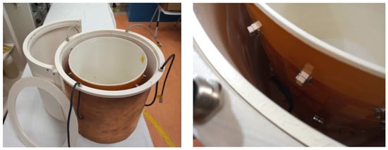 Taking into account the target application, the ‘intermediate’ configuration was chosen, built and tested on the workbench (Figure 10). Indeed, if the RF coil prototype is too long, the desired positioning of the patient’s head at the coil center could be problematic. The previous limitation holds for the human head imaging, but it may become irrelevant for other clinical applications (e.g., limbs).