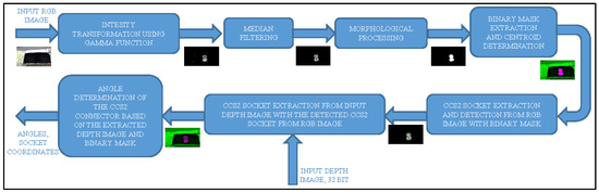 36]. Thus, the socket extraction algorithm uses both the RGB and depth images for the socket detection and tilt angles determination, as it is presented with the block diagram in