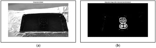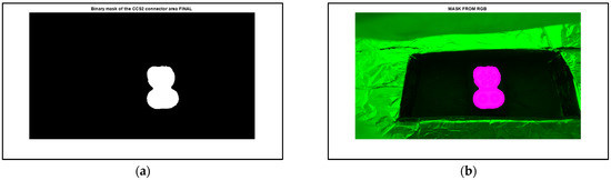 Figure 16b, the outcome of the intensity transformation is shown. The connector is well noticeable, although a large number of image components remained in the right part of the image. After the median filtering and morphological processing were performed, all the remaining unwanted components were eliminated and the binary mask was formed successfully.