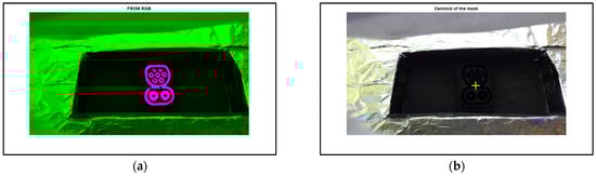 Figure 17a presents an example of correct detection of the charging socket contacts, while the second image shows the result when one electric contact of the socket is not detected. The detection rate with the Circular Hough Transform is 90.7%; however, it should be noted that the comparison would be complete and appropriate if it was performed on the Asian-type of socket, since the Circular Hough Transform-based approach is developed specifically for that socket due to its circle-shaped frame [