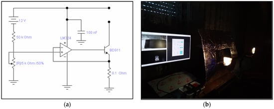 36]. This illumination source was proposed by Stereolabs’ engineering team during the consultations. The power of LED lights separately is 1.5 W, and they are connected to a 12 V voltage source. The intensity of LED lights is controlled with a simple regulation circuit presented in