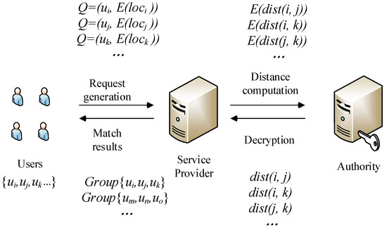 - Authority: The authority is responsible for the registration of users. It provides efficient key management for a wide range of password operations. It decrypts the distance data and sends the result back to the SP. The authority is an independent third party and will not conspire with the SP, thus ensuring the privacy of the service.