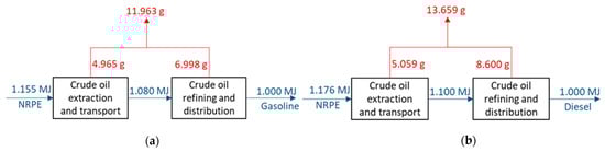 WTT analysis for gasoline (a) and diesel (b) [12].