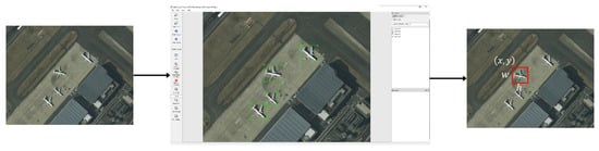 Figure 5 shows sample examples of the constructed dataset, which are 19 airplanes, 29 storage tanks, 8 ships, 5 vehicles with a resolution of 1m, and 2 bridges with a resolution of 2m. Because some airplane and ship targets only contain a small number of pixels under the condition of low resolution, it is difficult to manually judge whether it is an airplane or ship. Therefore, only targets with more than 5 pixels are labeled. The images annotations process is shown in Figure 6, in which the LabelImg software used for target annotation. In the obtained parameters, represent the coordinates of the upper left corner in the rectangle box where the target is located, w denotes the width, and h denotes the height.
