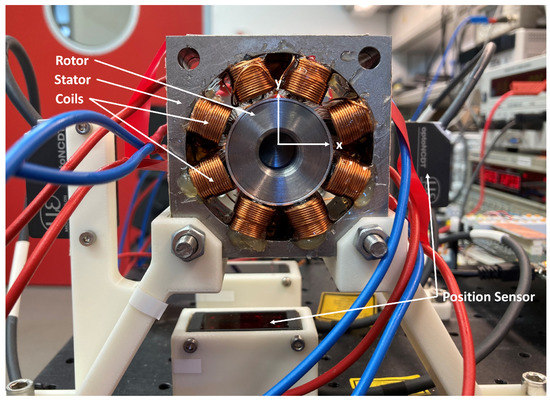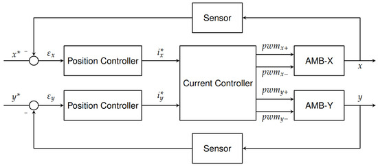 Further, there are often two electromagnets opposite to each other, as shown in Figure 2. In order to generate counteracting forces, the upper magnet is driven with the sum of the bias current i 0 and the control current i x . Instead, the lower magnet is driven by the difference between the bias current i 0 and the control current i x . This configuration is called differential driving mode [1,29,30].