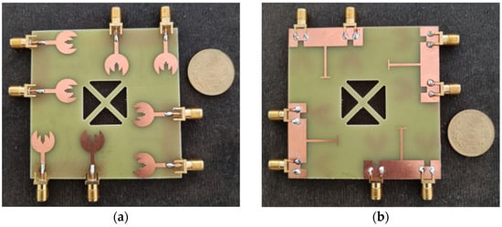 - Nosrati, M.; Daneshmand, M.; Virdee, B.S. Novel compact dual-narrow/wideband branch-line couplers using T-Shaped stepped-impedance-stub lines. Int. J. RF Microw. Comput. Eng. 2011, 21, 642–649. [Google Scholar] [CrossRef]