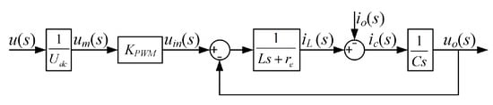 The equivalent model of the single-phase inverter is shown in Figure 2. KPWM is the equivalent gain of H-bridge, and its value is equal to Udc. To make the model simpler, a proportional gain 1/Udc is coupled in series with the control signal u(s), where um(s) is the sinusoidal modulation signal.
