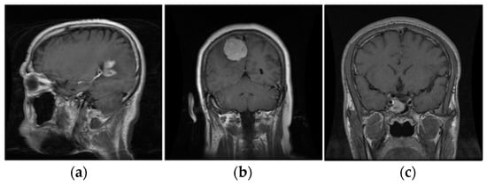 The three types of tumors. (a) Glioma; (b) Meningioma; (c) Pituitary.