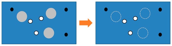 There have been many studies on detecting UAV conflict, and the methods used by various researchers often differ. For example, detection methods for UAVs conflict can be divided into two main categories: deterministic conflict detection, based on real-time flight dynamics, meteorological information, UAV flight plans and careful consideration of navigation performance errors; and probabilistic conflict detection, based on assessing the influence of uncertain factors such as meteorology on future tracks to determine the probability that UAVs will collide in the future. Among them, incomplete information is a typical feature of probabilistic conflict detection, which is shown in Figure 1. In the figure, the black and white circle is the UAVs of different sides, the gray circle is the obstacle and the dotted circle indicates the uncertainty of the obstacle. In the research process, the uncertainties of obstacles, opponents and environment are reflected in the reward function, so it is of great significance to study the path planning of UAVs with unknown reward functions.