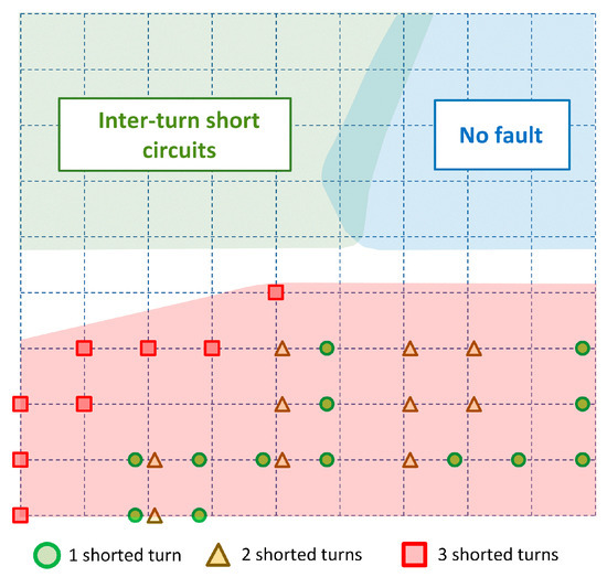 - The development of an SOM-based fault detector and fault level classifier for ITSC and PM faults based on a relatively small dataset, and proposing a method for the analytical determination of areas in a Kohonen map characteristic of individual faults, which enables the automatization of the fault-type classification;
