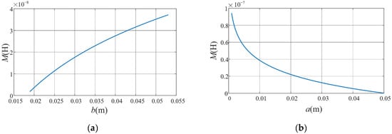 Influence of single parameter change on mutual inductance. (a) Variation curve of mutual inductance coefficient with outer diameter b. (b) Variation curve of mutual inductance with inner diameter a.