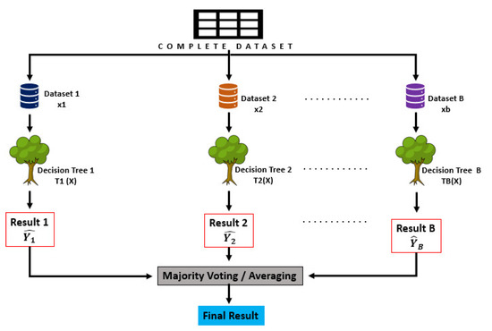 As illustrated in Figure 3, random forest ensembles B trees (T 1 (X),...,T B (X), where X = x1,...,xp is a p-dimensional vector of molecular descriptors or properties linked with a molecule. The ensemble produces B outputs where , is the tree’s forecast for a molecule. The effects of all trees are mixed to generate a single, very last forecast, Y. In type issues, the elegance forecasted with the aid of using maximum trees is Y. It is the average of the individual tree predictions in the regression.