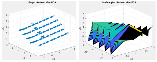 For data visualization purposes, principal component analysis was carried out on 4 parameters and reduced to 3 parameters. The data was visualized in three-dimensional using the scatter and surface plots that are shown in Figure 9, where z_1, z_2, and z_3 were the principal vectors projected onto the 3D plane. The graph depicts the data scattered upon the projection of data onto a 3D plane. The input had 4 attributes, and as PCA was used for visualization purposes only, the visualization did not indicate anything significant about how the data was represented. The scatter plot showed discontinuity in data and hence, the derivative-based models were ruled out; this also ruled out the importance of PCA in work.