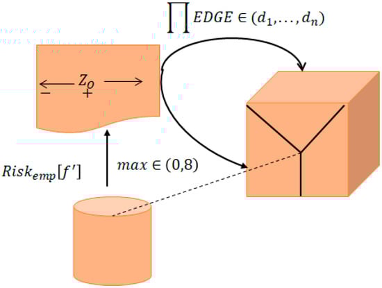 Figure 3 shows the concept of correlation of error bounds and risk function. As we propose the novel idea of limiting the error between 20% and 80% for optimum realistic fitness for the real-world prediction, it shows that the Risk Estimation (emp) stays in bounds of logical cube shown on the right. The center point shows the ideal co-variance of function . P (x, Y, Z) will be unknowable at this time. Based on the “empirical risk minimization principle”, which is statistical learning theory that can employed to determine the risk.