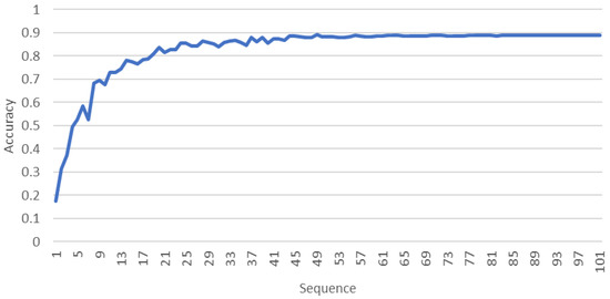 Figure 10 shows the recorded transaction based on filtering the performance improvements using the smart contract. From the 100 times transfers and fine-tunings, 22 times are performed to improve the prediction accuracy of the deep learning model. The performances are recorded to the ledger as the contribution of edge devices with the transfer information that can be used for developing the prediction applications. The performance is increased from very low accuracy to approximately 90%. The recorded improvements depict that the knowledge transfer in edge computing improves the performance with the decentralized computing ability and data.