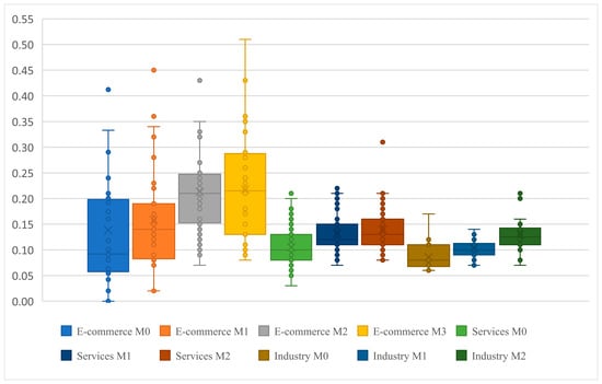 These research results were obtained during the doctoral research of the first author under the coordination of the second author. The authors applied the proposed indicator and methodology as pilot research in e-commerce, the results being published in []. During the doctoral research, the authors extended the implementation of the indicator by adapting the implementation methodology for the automotive industry and service sectors to compare their continuous improvement processes, customer-oriented strategies, and the cost reduction management of these companies. The main scope was to develop and adapt the new indicator and the implementation methodology according to each sector’s specificities. All the conditions and details about the implementation methodology are presented in the Material and Methods section.