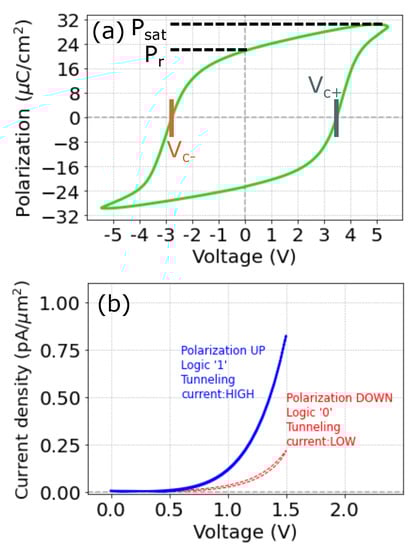 - Huang, H.H.; Wu, T.Y.; Chu, Y.H.; Wu, M.H.; Hsu, C.H.; Lee, H.Y.; Sheu, S.S.; Lo, W.C.; Hou, T.H. A comprehensive modeling framework for ferroelectric tunnel junctions. In Proceedings of the 2019 IEEE International Electron Devices Meeting (IEDM), San Francisco, CA, USA, 7–11 December 2019. [Google Scholar]