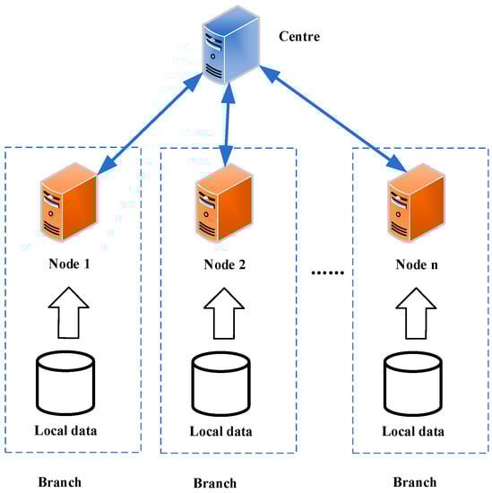Intrusion detection technology is an effective means of ensuring network security. At present, the use of deep learning algorithms for intrusion detection has become a trend [4,5,6]. In the field of smart grids, the intrusion detection method based on deep learning has achieved some research results, such as the use of improved extreme random tree classifiers to achieve a multi-layer network security assessment of smart grids, as seen in [7], which also demonstrates the real-time intrusion detection of network security using machine learning, etc. However, some specific problems will be encountered during the implementation process: first, the supervised deep learning method requires the training data to be as rich and comprehensive as possible. However, the power communication network and smart grids are managed by different regions or departments, which may lack effective data aggregation mechanisms, and there may be data islands. Secondly, due to the existence of power system partitions and domains, the original data are aggregated across departments throughout the network, which may have potential data security and privacy problems, and lead to fuzzy security management boundaries and unclear security responsibilities. However, if each department only conducts intrusion detection research based on its own data, the resulting intrusion detection models will generally encounter problems, such as a low detection ability and a poor generalization ability caused by uneven data distributions.