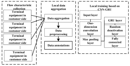 - Each node uses the intrusion detection model based on the CNN–GRU algorithm to train the local data, and different nodes are maintained within the same algorithm network;
