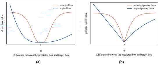 Comparison of shape loss and normalized penalty factor before and after improvement. (a) Shape loss; (b) normalized penalty factor.