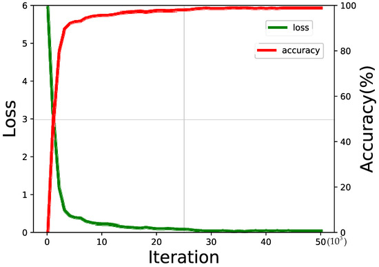 Figure 7 shows the curves of the loss function and the accuracy of the Siamese network during training when