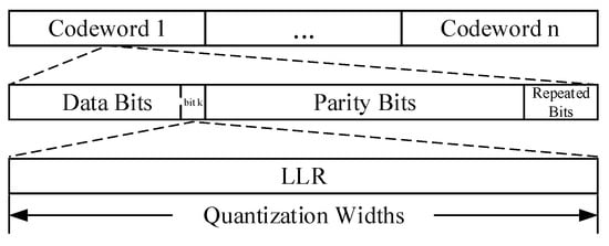 The DF received by the decoder is shown in Figure 1, consisting of a series of codewords. Each codeword includes the actual information field Data Bits (DBs), the check field Parity Bits (PBs) obtained from the parity check matrices, and the replica field Repeated Bits (RBs) that may exist. Each bit of these fields is typically populated by a log-likelihood ratio (LLR) soft information of the intrinsic channel observations.