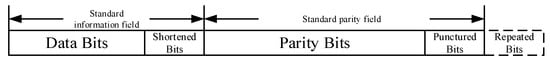 From NCW, Navbits, LLDPC, and R, the SBs Nshrt, PBs Npunc, and RBs Nrep are obtained according to Equations (5)–(7). The Npunc may need to recompute with increment Navbits [1].