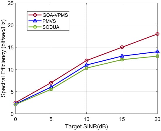 Spectral efficiency for GOA-VPMS vs. SODUA and PMVS algorithms.