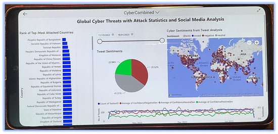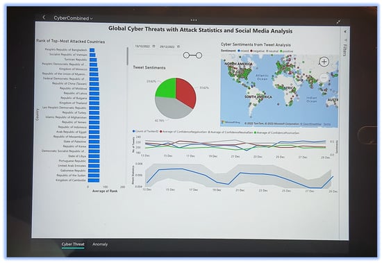 All the source files (including the CyberCombined.pbix Microsoft Power BI solution, *.csv files corresponding to AI-based Tweet analysis, countrywide cyber threat indexes, and the SQL_Statements.txt file for SQL statements) are located at https://github.com/DrSufi/CyberThreatIndex, accessed on 19 February 2023). The Microsoft Power BI solution file (CyberCombined.pbix) can be opened after installing the Microsoft Power BI Desktop (freely available at https://www.microsoft.com/en-us/download/details.aspx?id=58494, accessed on 19 February 2023).