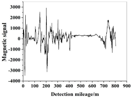 As shown in Figure 2 and Table 2, we measured the surface of the pipe by instrumentMagnetic induction data are collected by three-dimensional magnetic signal sensors. The main sources of signal noise are electromagnetic components, transistors, resistors and integrated circuits. In addition, the buried depth and direction of buried pipeline, acquisition environment, geomagnetic field, and operator’s own factors are also included. Secondly, as shown in Figure 3, there are some mutation points with large amplitude in the data, which are caused by many factors. These points can not be easily listed as noise signals. It is necessary to conduct many tests to determine the causes before making a decision. Therefore, we should not only remove the noise in the data as much as possible, but also retain some large value mutation points in the data.