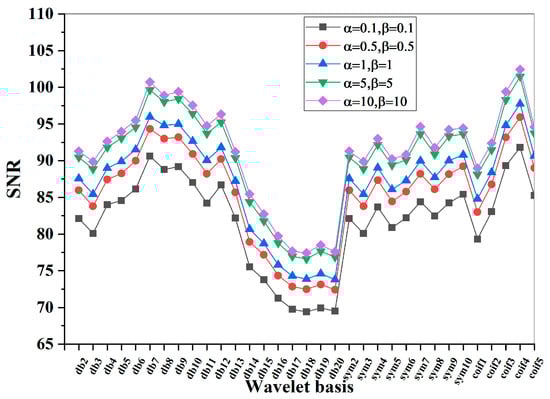 SNR values under different wavelet basis functions.