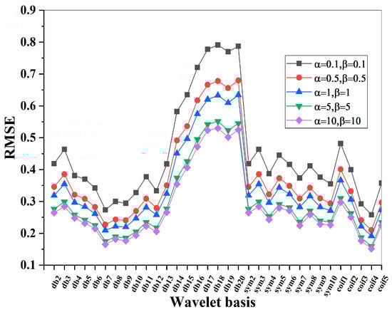 RMSE under different wavelet basis functions.
