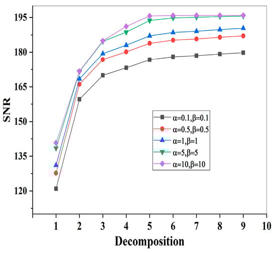 SNR under different decomposition levels.