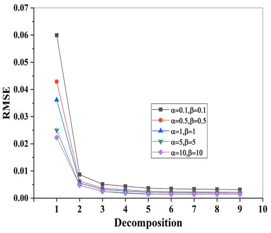 RMSE with different decomposition levels.