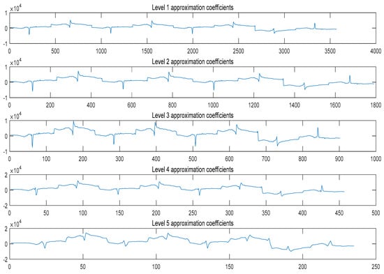 Approximate coefficients under different decomposition levels.