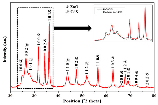 X-ray diffraction pattern of Co-doped ZnO/CdS nanosheets.