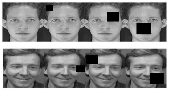 On the ORL dataset, we conduct clustering experiments for k = {10, 20, 30} people. For each k, we randomly pick k people from ORL, each of which has 10 images and the images are down sampled to 32 × 32 pixels. Then, we perform masking operations for each people. We randomly corrupt 4 out of 10 photos with mask size 5 × 5 at random positions, then a test dataset with 40% corrupted images is produced. Repeat the masking operations with mask sizes 8 × 8 and 10 × 10 to have two more test datasets. Furthermore, we test the noise-free dataset as a benchmark. Finally, we vectorize images and normalize each vector to have a unit length. Some images are shown in Figure 3.