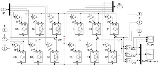 Different combinations of IGBT open circuits form different fault types. For the grid-side converter, when all IGBTs are working healthily, the converter is in normal state. When only one IGBT fails, six fault modes are formed: T1, T2, T3, T4, T5, and T6. When two IGBTs in the same half-bridge fail at the same time, six fault modes are formed: T1 and T5, T1 and T3, T3 and T5, T2 and T6, T2 and T4, T4 and T6. When two IGBTs in the same bridge arm are faulty simultaneously, three fault modes are formed: T1 and T2, T3 and T4, T5 and T6. When two IGBTs in different half-bridges fail at the same time, six fault modes are formed: T1 and T6, T1 and T4, T3 and T6, T3 and T2, T5 and T4, T5 and T2. It is rare that OC faults occur in three or more IGBTs simultaneously, so the OC fault diagnosis of single IGBT faults and double IGBTs faults is studied in this work. Thus, there are a total of 22 fault modes in both the faulty and healthy state.