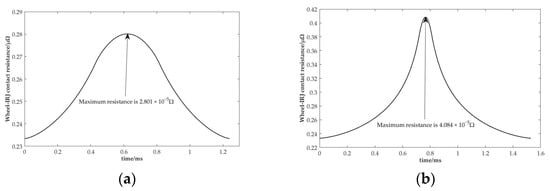 Wheel-IRJ contact resistance under different insulated endplate thickness: (a) d = 6 mm; (b) d = 10 mm.