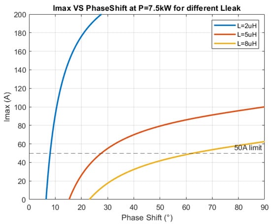 vs. phase shift at maximum power for different leakage inductances.