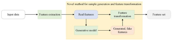 We thus generated fake features using the features of real data in a hidden layer of an artificial neural network to consistently achieve better results. As the samples classified in this study are image datasets, the backbone of the model is a convolutional neural network. It is built from several convolutional layers, followed by a few fully connected ones. The experiments showed that after all the convolutional layers, generating the features in a hidden layer is optimal in the later components of the model. The much simpler structure of this layer enables the use of a significantly smaller generative model. At the same time, the generated samples have to be run only through the second, a minor part of the classifier. In this way, the further computational costs caused by using synthetic samples are almost entirely eliminated.