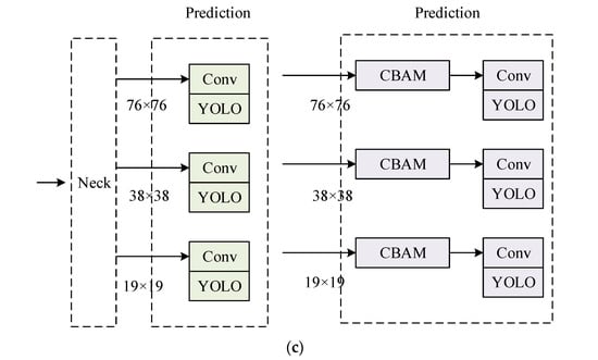 Figure 7c, the CBMA module is added before the convolution of YOLOv5’s prediction module.