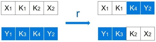 Suppose there is an abstract alphabet M and two strings , , which is composed of symbols of M. The primary splicing operation refers to the conversion of (,) to (,) under the premise of rule . Figure 1 shows the conversion process.