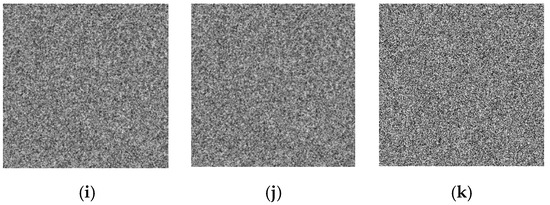 (a) ”Lena” image; (b) cipher image (initial encryption key); (c) decrypted image (initial encryption key); (d) ; (e) ; (f) ; (g) ; (h) ; (i) ; (j) ; (k) . Key sensitivity test: (d–k) Decrypted image with the wrong key.